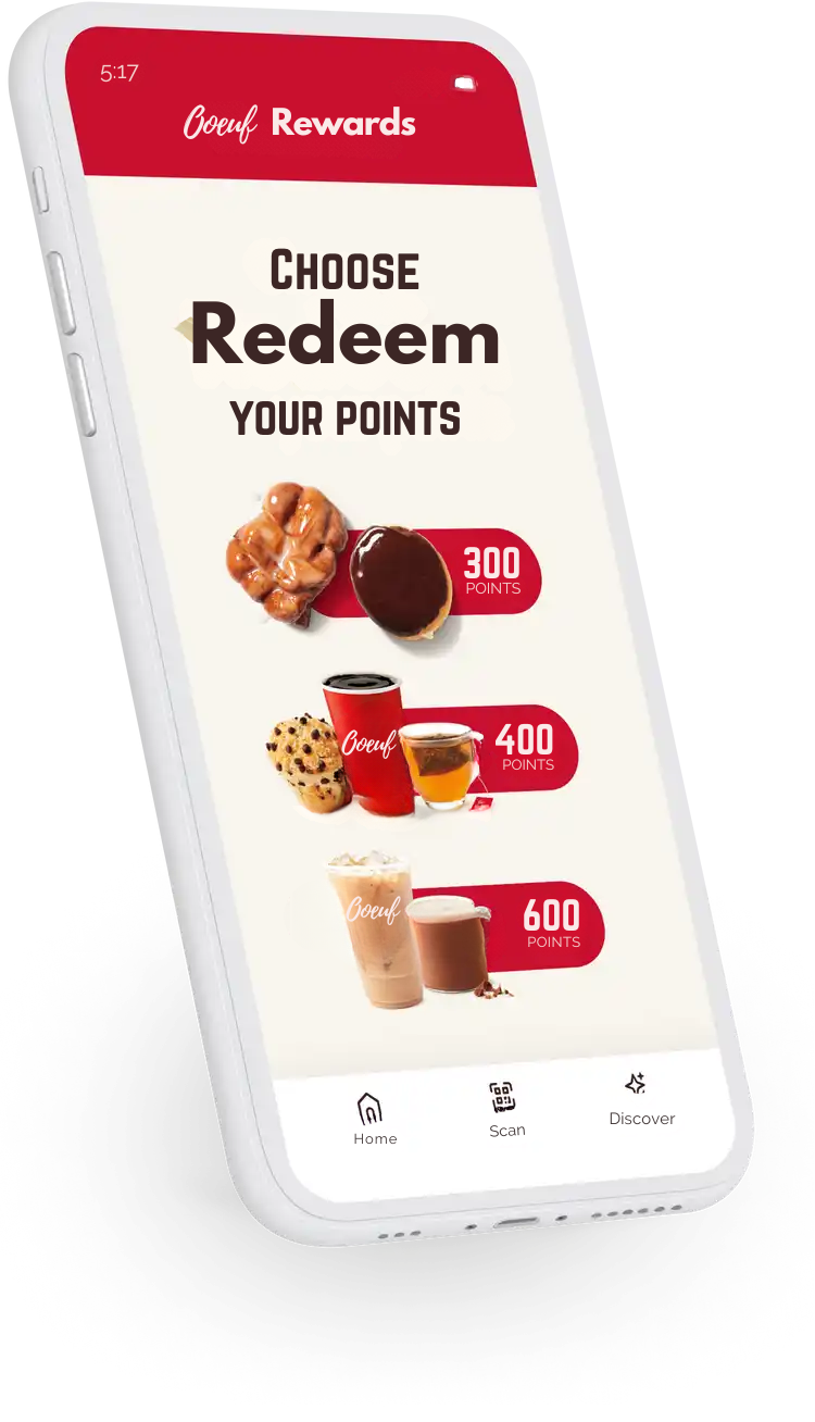 We’ve built Ooeuf Financial into the Ooeuf app, so you can easily sign up, manage your account, track your points, and redeem rewards in one convenient place.